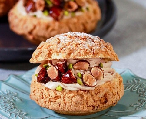 月島食品グループ(月島食品工業株式会社、東京フード株式会社、株式会社ホーライ)は、アーモンドが豊かに香り、見た目も食感も楽しめるクッキーシュー用の業務用冷凍クッキー生地【アーモンドクッキーC-5】と、包あん機適性に優れさまざまな素材と調和する業務用生チョコレート【クルムレールミルク】を2024年4月1日(月)より新発売します。
