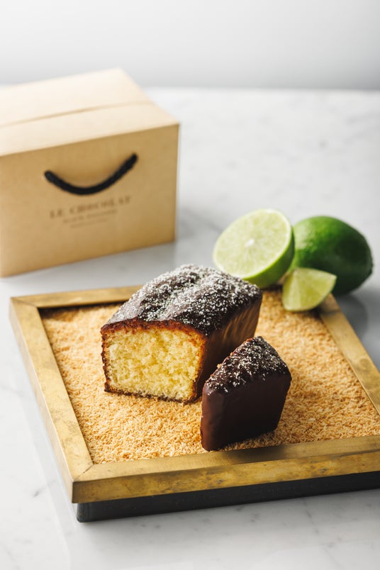 ■爽やかでトロピカルな風味を堪能できる「ケーク・シトロンヴェール・ココ」フレッシュライムの果汁、ゼスト、ココナッツフレークをたっぷり混ぜ込んで焼き上げたケークをカカオ75%ショコラでコーティングしました。すっきりとしたライムとココナッツのトロピカルな風味とショコラの組合せは暖かくなるこれからの季節におすすめです。