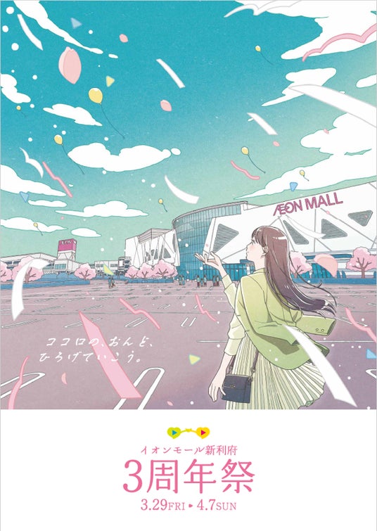 人気イラストレーター「純頃」さん描きおろしのオリジナルビジュアルを制作。イオンモール新利府を背景に、春風の心地よさを鮮やかに表現しました。