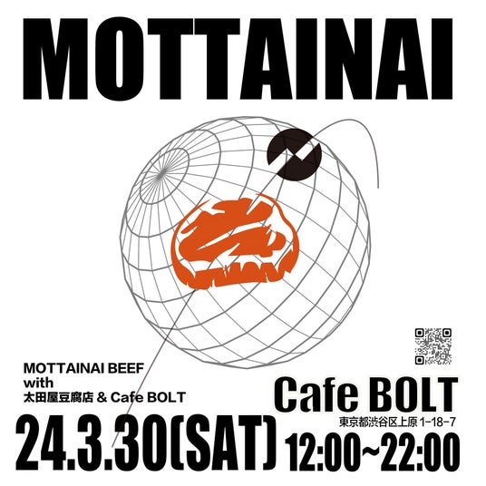 3月30日(土)に開催するコラボイベントは、モッタイナイビーフとドリンクのおいしさを体験できるこの日だけの1DAYイベントです。端材や規格外となり日の目を浴びることないA4・A5ランクの和牛・国産牛ブランド「モッタイナイビーフ」と代々木上原にあるカフェ「BOLT」がコラボして開催するイベントとなっており、フードプロデュースは「FOOD STORY PROJECT」が担当し、それぞれが“モッタイナイ”ビーフとドリンクのおいしさと商品に込めた想いをもとにご提供します。
