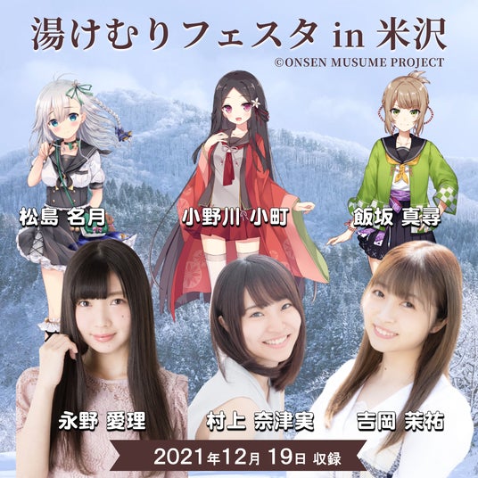 「湯けむりフェスタ in 米沢」は、小野川小町(村上奈津実)・飯坂真尋(吉岡茉祐)・松島名月(永野愛理)ら3人の温泉むすめが出演し、約300人の観客が参加したトークライブイベント。