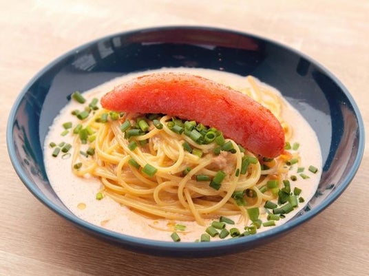 パスタソースには粒明太子と、明太子の漬け込み液とツナをあわせた「めんツナ」を使用。明太子のぴりりとした辛味とクリームのまろやかさ、「めんツナ」のうま味が絶妙にマッチした味わいに。さらに、仕上げにはふくやの明太子を贅沢にのせた、まさに明太子の美味しさを存分に味わえるパスタです。