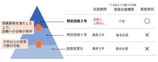 特定技能2号になることで、在留期間に上限がなくなり、長期的な視点で人材の育成が可能になります。また、在留期間切れによる追加の採用コストを抑えられます。
