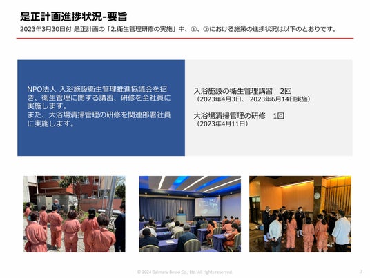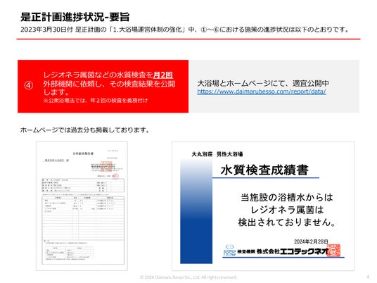 株式会社大丸別荘は、2023年3月30日付けの是正計画から約1年が経過したことを受けて、進捗報告を申し上げます。