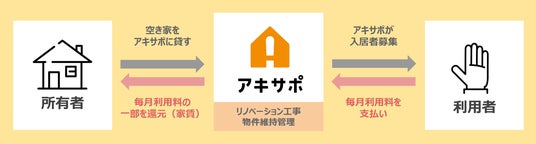 首都圏と関西圏を中心に展開する空き家活用サービスで、「アキサポ」が提供するサービスの一つです。