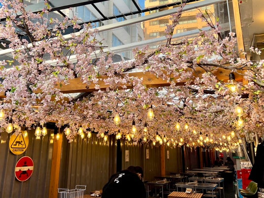 日本初の倉庫丸ごと横丁『ほぼ新宿のれん街 倉庫別館』では3月15日より約1ヶ月間に渡り、入口、館内及びテラス席を桜の装飾で彩る『桜まつり』を昨年に引き続き今年も開催致します。