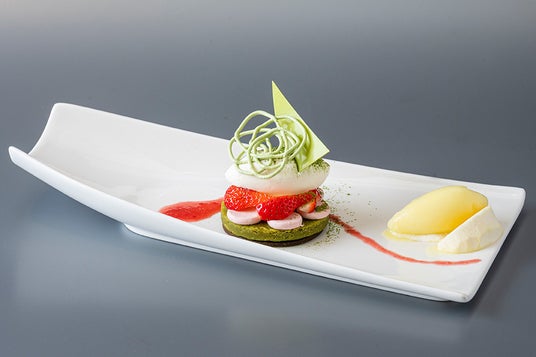 長崎産そのぎ抹茶と苺のタルト 日向夏のソルベを添えて