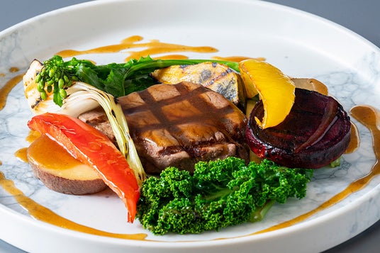 五島産和牛フィレ肉の網焼き 雲仙つむら農園の温野菜添え