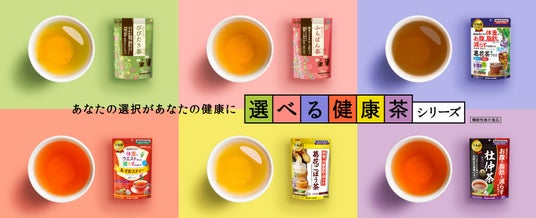 “選べる健康茶シリーズ”とは、「悩み」「味」「温度」「飲用シーン」の4つの項目から自分自身にあったお好みの健康茶を選ぶことができるシリーズです。すべて機能性表示食品で確かな機能をもち、それぞれの健康課題の解決をサポートします。