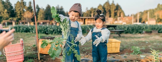 THE FARMは、東京ドーム約2.5個分の敷地面積を持ち、農園、グランピング、コテージ、BBQ場、キャンプ場、レストランカフェ、温浴施設などを備える日本最大級の農園リゾートです。