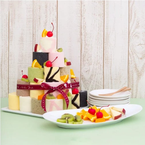 届いてから自分でタワーのように積み上げ、アレンジを楽しむ「ロールケーキタワー」改めてカットする必要なくお召し上がりいただけます。
