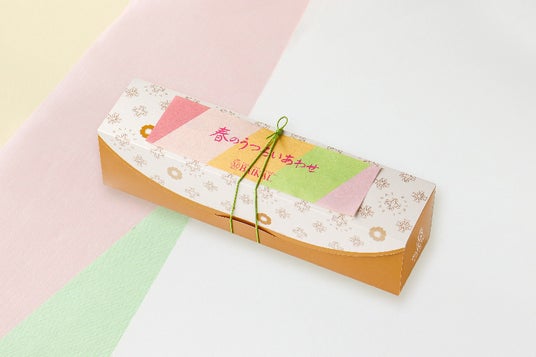 下鴨本店限定で販売する新商品「春のうつろいあわせ」は、平安時代の中期に完成した女房装束の儀服「十二単」の色目に着想を得て商品開発した、プチケーキです。