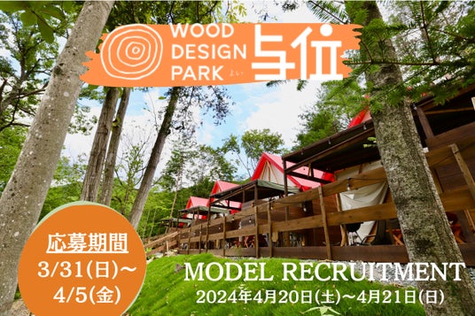 2023年4月グランドオープンの与位温泉と宍粟の星空・自然に癒されるグランピング施設『WOOD DESIGN PARK 与位』で、4月20日(土)~4月21日(日)にWEBページで使用される写真素材の撮影会を行います。