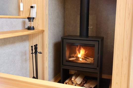 施設内の薪ストーブや薪ボイラー、屋外の焚き火スペースやサウナエリアのサウナストーブまで、丹波地域の未利用材を活用した薪をエネルギー源として導入しています。