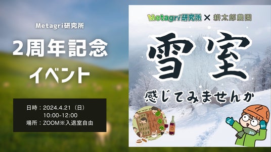Metagri研究所の設立2周年を記念し、2024年4月21日(日)に「開所!2周年記念イベント~オンライン雪室ツアー&雪室熟成の食体験~」を開催いたします。