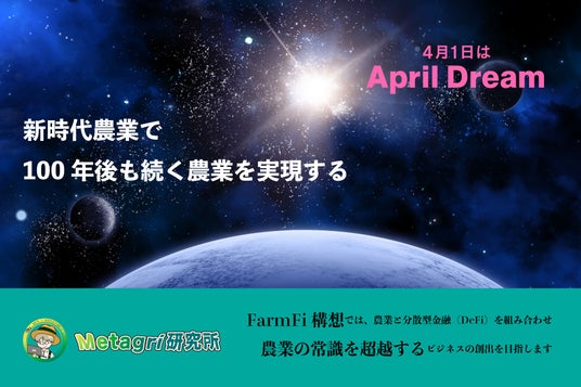FarmFi構想では、農業(Farm)と分散型金融(DeFi)を組み合わせ、農業の常識を超越する仕組みの構築を目指します。この度、「FarmFi」の本格始動とともに、研究所設立2周年を記念した「Metagri研究所2周年記念イベント」の開催をお知らせいたします。