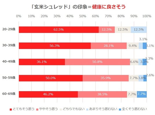 それぞれの商品の印象について、味わいや品質、用途などについての10項目(※)を調査したところ、2商品とも「健康によさそう」「新しい味である」の項目では80%以上が「そう思う」と回答し、特に20代は「とてもそう思う」の割合が他の年齢層と比較して高い結果となりました。