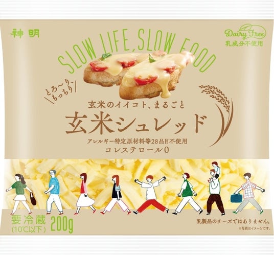 原料に国産の玄米粉を使用した新しいプラントベースのチーズです。ピザトーストやチーズフォンデュ、そのままサラダのトッピングなど、乳のチーズから置き替えて使用することもできますが、全く新しいプラントベースチーズのひとつとして料理をお楽しみいただけます。