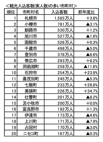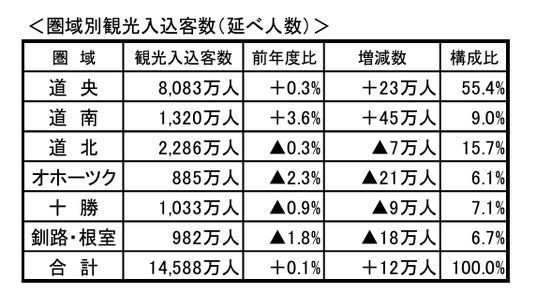 市町村別観光入込客数(実人数)の全道合計:1億4588万人