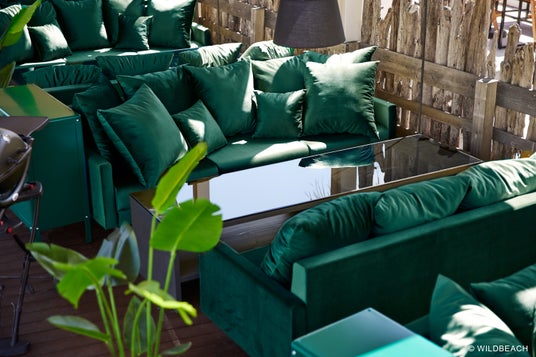 ビーチサイドに佇む、高級リゾートホテルを思わすラグジュアリーソファ。