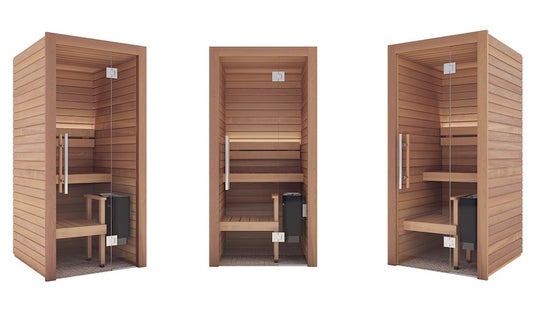 北欧産コンパクトキャビンサウナ ガラスと木の調和でぬくもり感じる空間に