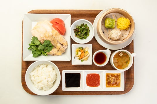 ・シンガポール海南鶏飯(点心三種/無限ピーマン/お新香)