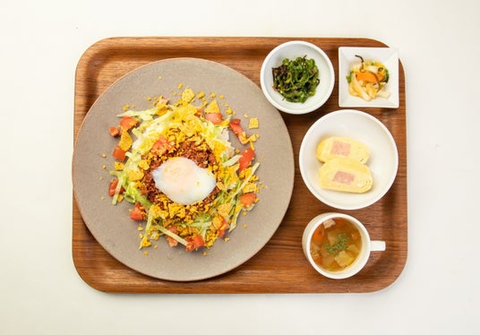 沖縄発祥のタコライス。スパイシーな香辛料で味付けした挽肉とトマトやレタスと一緒にお召し上がりください。