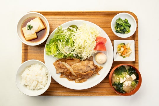 ・豚バラ肉の生姜焼き(揚げ出し豆腐/小松菜のお浸し/お新香)