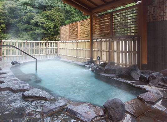 「美肌の湯」をお愉しみいただけます。(大浴場、貸切風呂はもちろん、客室も温泉が引かれています。)最上階の貸切露天風呂は、趣の異なる3つのお風呂をご用意しております(有料)。プライベート空間で周囲を気にせず温泉に浸かれるのも魅力の一つです。