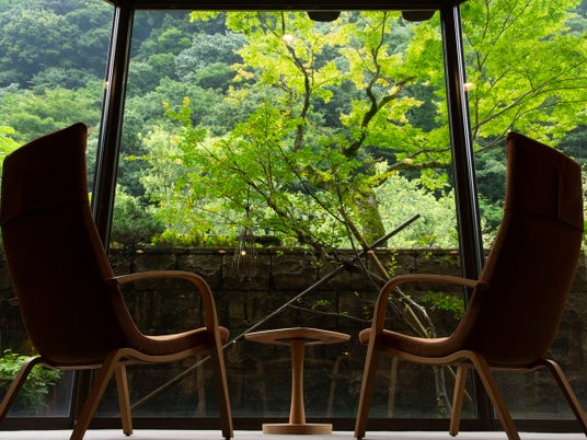 1階「ロビー&ライブラリー」からは「湯坂山」の眺望を臨むこともできます。