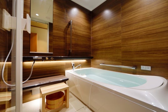 ◆温泉&浴室オーディオ:新客室内のお風呂も温泉です。 温泉に浸り、ご自身のスマホ等から Bluetooth でお気に入りの音楽をお楽しみいただけます。