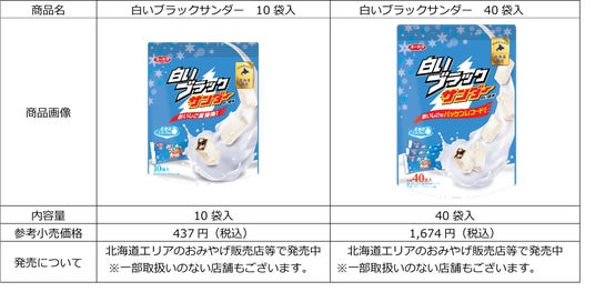 有楽製菓の札幌工場で製造しております白いブラックサンダーシリーズは2011年に北海道みやげとして発売を開始し、2021年には累計出荷本数2億本(※)を突破するなど、発売から10年以上、北海道みやげの新定番として皆さまのご支持を頂いております。
