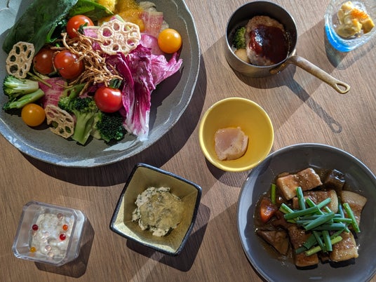 旬の野菜や高原の乳製品をご提供する『白樺ファーム1450』、鉄板dining『ほとり』、信州郷土料理『よらっしゃれ』、スイーツ&ベーカリー『花』などの店舗がずらりと並び、地元の野菜・旬の山菜など地域食材を中心としたメニューを幅広いラインナップでご用意しています。