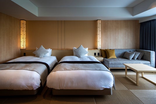 いずれも琉球畳にベッドの和洋折衷タイプ。ゆっくりお寛ぎいただけるように、モダンかつ木材のあたたかみを活かした落ち着いたデザインとなっております。