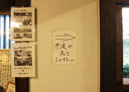 津波の高さを示す貼り紙