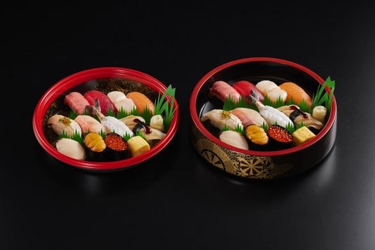 「銀のさら」では、使い捨て用の寿司桶容器としてプラスチック製の容器を採用しています。