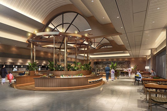 臨場感溢れるライブキッチンから提供される出来立ての美味しさを広々とした空間で。