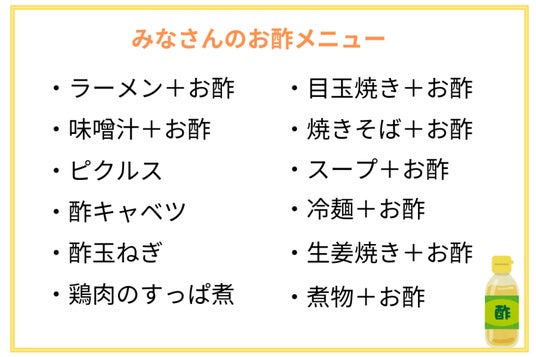 皆さんが普段どのようにお酢を楽しんでいるかは、以下のリンク先で確認できます。