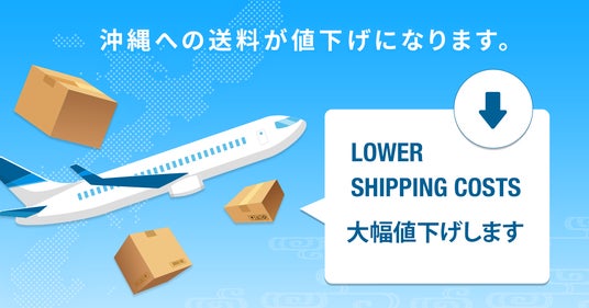この度、物流の業務、経路の効率化により、沖縄地域の送料を値下げすることができましたことをお知らせします。お客様によりリーズナブルな価格で商品をお届けするため、その他の地域においても送料の引き下げを今後も推進してまいります。