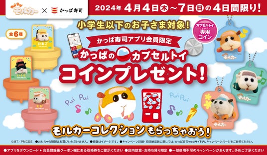コロワイドグループのかっぱ寿司(カッパ・クリエイト(株) 本社:神奈川県横浜市、代表取締役社長:山角豪)では、2024年4月4日(木)~7日(日)の4日間、かっぱ寿司アプリ会員のうち小学6年生以下のおこさまを対象に、かっぱ寿司店内に設置した「カプセルトイ」を回せる「カプセルトイコイン」プレゼントキャンペーンを開催いたします。