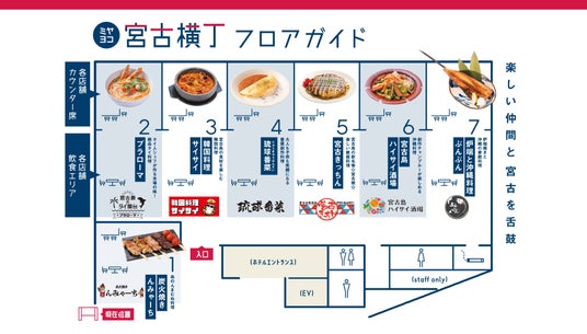 また、入居する店舗は全店が“予約不可”で運営されます。気軽にふらりと立ち寄って、7つの“宮古島の美味しい文化”を“はしご”できる「横丁」スタイルの当施設は、夕食難民問題の解消に貢献するとともに、観光の方だけでなく地域の方にも、新しい宮古島の味・魅力・食文化を発見できるワクワク感を提供します。