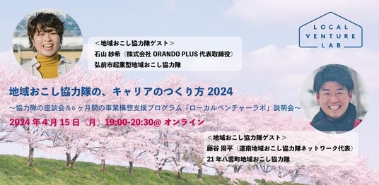 募集に際し、4/15(月)19:00-20:30に「地域おこし協力隊のキャリアのつくり方」、4/16(火)12:00-13:30には「企業リソースの地域での活かし方」をテーマに、ゲストを招いたイベント形式での説明会を開催いたします。報道関係の皆さまにも公開いたしますので、ぜひご取材ください。