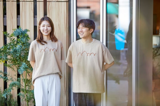 私たちが皆さまに提供するコーヒー体験を追求していく中で、カフェ以外でのコーヒー体験について考えた時、真っ先にイメージしたのが自然豊かな環境で飲むコーヒーでした。そこで、「Coffee in Nature(コーヒー イン ネイチャー)」をテーマにアウトドアシーンに向けて「アウトドア ブレンド」を開発し、移動式カフェ「ブルーボトル コーヒートラック」限定でご提供してまいりました。この度、ブルーボトルコーヒーのコーヒー抽出殻を再利用して染め上げたTシャツを公式オンラインストアとブルーボトル コーヒートラックで発売いたします。素材選びにこだわり、ひとりひとりの普遍的な服を目指して製作する「UNIversal FORM(ユニバーサルフォルム)」で製作いたしました。刺繍された「Coffee in Nature」のイラストは、アートディレクター半田淳也氏のディレクションのもと、ロサンゼルス在住の作家カツヲ・デザインが描いた山の稜線とコーヒーが抽出される様子を表現。オーガニックコットンを使用し、リラックスできるゆとりのあるフィット感で肌触りも柔らかくしっとりとした繊細なタッチに仕上げました。