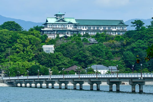 竹島から見た蒲郡クラシックホテル