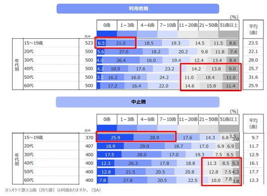 一方、40代以上の3割の持ち歌は【11曲以上】。