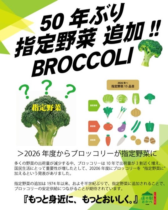 農林水産省は、多くの野菜の出荷量が減少する中、ブロッコリーは10年で出荷量が3割近く増え、国民生活にとって重要性が増したとして、2026年度から“指定野菜”に加えることにしました。1974年以来、およそ半世紀ぶりにブロッコリーが指定野菜に追加されることになり、安定供給につながることが期待されます。
