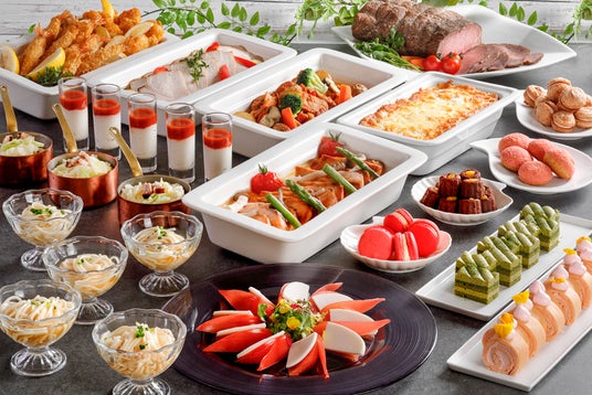太陽光が差し込む吹き抜けの開放的な空間で、ご家族やお友達と彩り豊かなランチブッフェをご堪能ください。