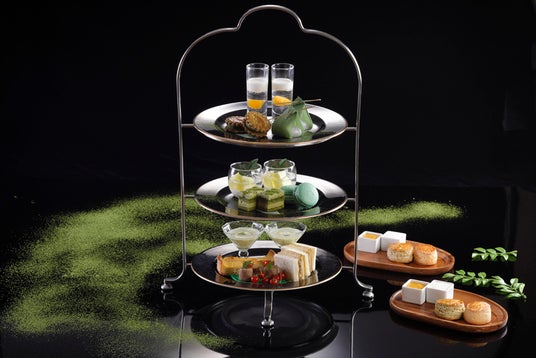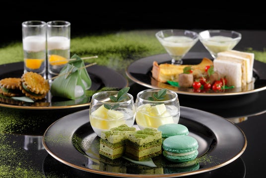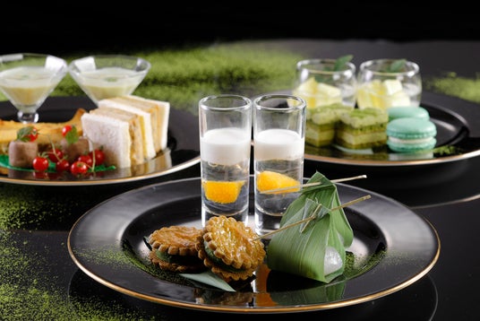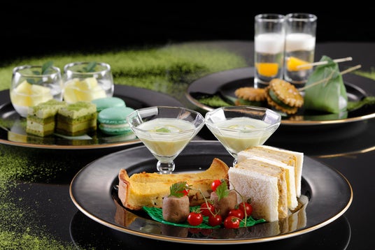 地元・四日市のお茶で仕上げたアフタヌーンティー。ほろ苦い味わいの抹茶とマスカルポーネを合わせたまろやかな抹茶ティラミスをはじめ、かぶせ茶の香りがアクセントのだし巻きサンドウィッチやわらび餅など、ここでしか味わえない品々をご用意しました。開放感あふれる空間で、上品な抹茶のアフタヌーンティーをお楽しみください。