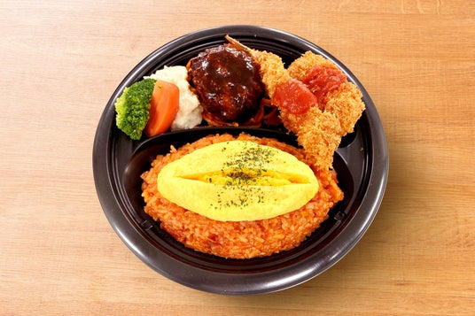 銀座ライオンプレート「銀座ライオンプレート」(税込1680円)「ハンバーグ・エビフライ・カニクリームコロッケ・オムライス」と、大人から子供まで幅広い世代の大好物メニューを詰め合せました。ご家族でシェアしても楽しめるプレート弁当です。
