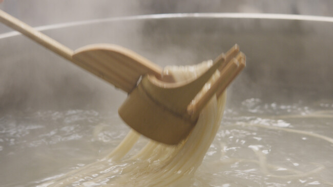 「麺職人」の称号を得るためには、麺職人試験に合格する必要があります。一つ星麺職人の試験においては、実技試験と筆記試験があり、麺づくりの工程ひとつ一つの意味や目的への深い理解が問われます。うどんのおいしさはもちろんのこと、うどんが完成するまでのすべての工程において技術と知識を有しているのかを厳しく審査されます。その合格率は、一つ星麺職人試験で約3割、二つ星麺職人試験となると約1割と突破するのが非常に難しい試験です。